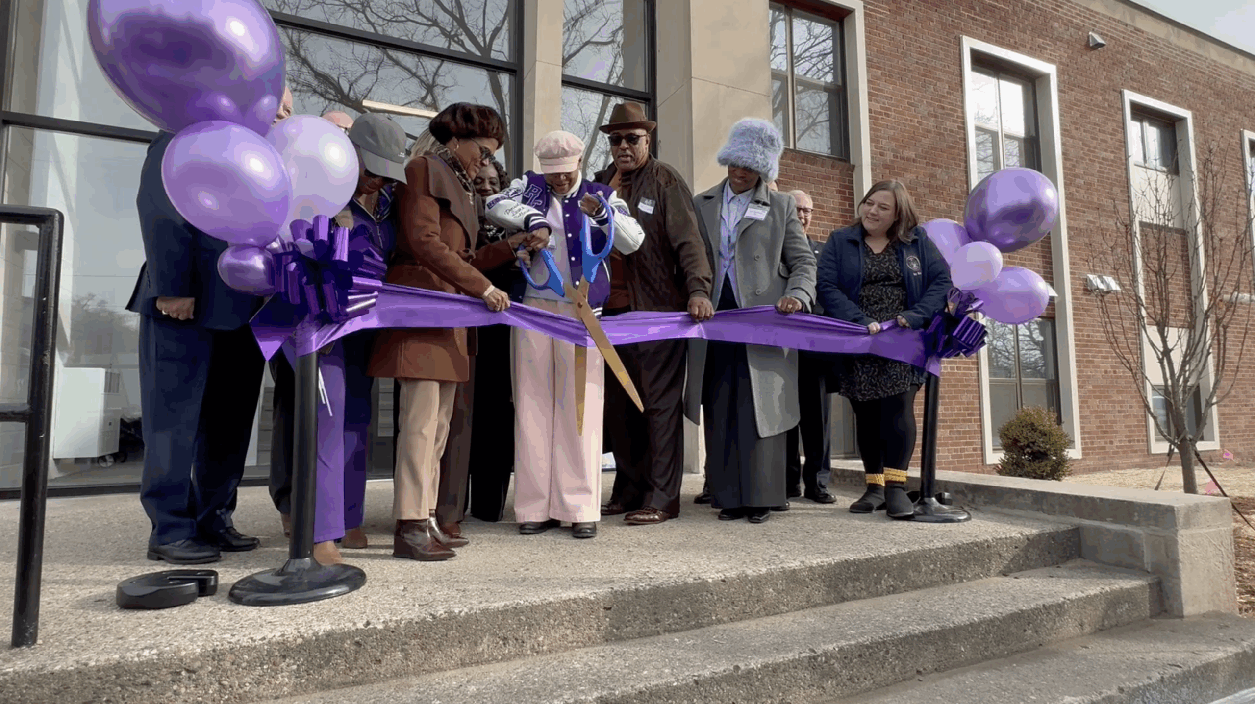 Speakers, community partners and supporters officially cut the ribbon for Dr. Violet T. Lewis Village.